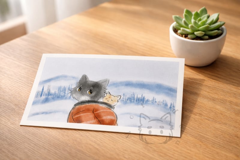 ねんねこ しょこら元駅長と薄力粉(ポストカード)
